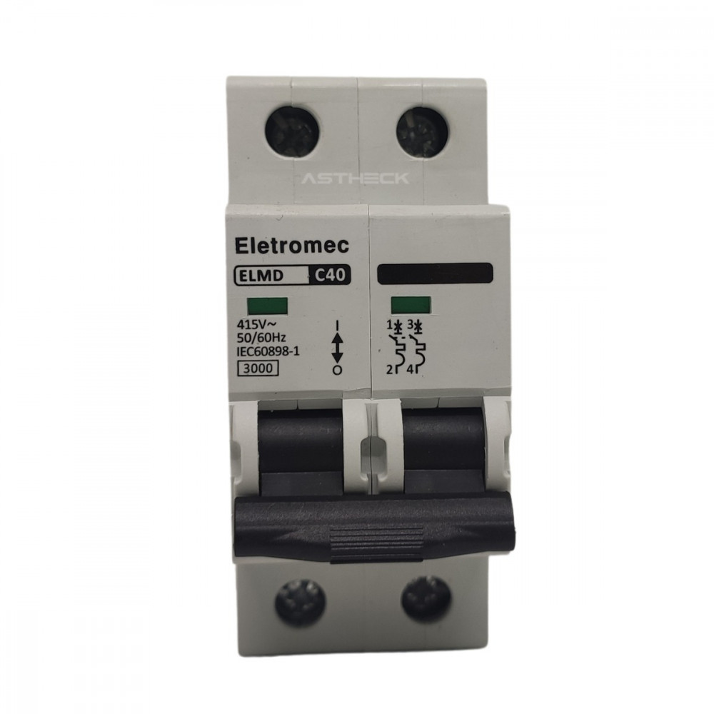 O DISJUNTOR EATON ELMD-2C40 é um dispositivo bipolar projetado para proteção de circuitos de média potência em redes trifásicas e monofásicas de até 415V AC. Com capacidade de interrupção de 3kA e curva C, oferece segurança crítica para cargas resistivas e motores de até 20CV (220V).